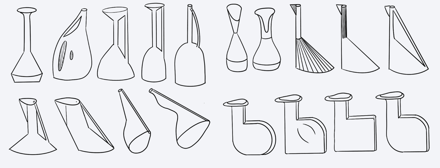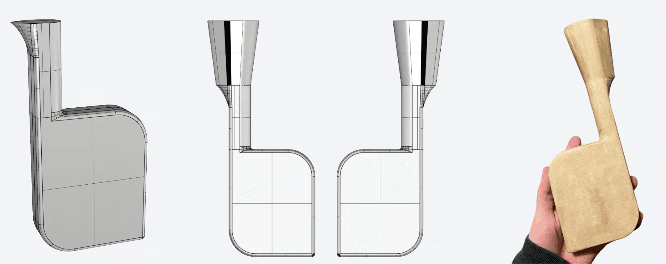 I chose this general form to develop further from my ideation, as it had this off-centred neck and a curved body where the user would hold, providing an ergonomic grip while maintaining visual resemblance to its natural inspiration. From testing in clay, the fluid dynamics functioned as predicted, approving my hypothesis. Due to the time constraints of this project, I couldn’t do further desired testing before going onto production.