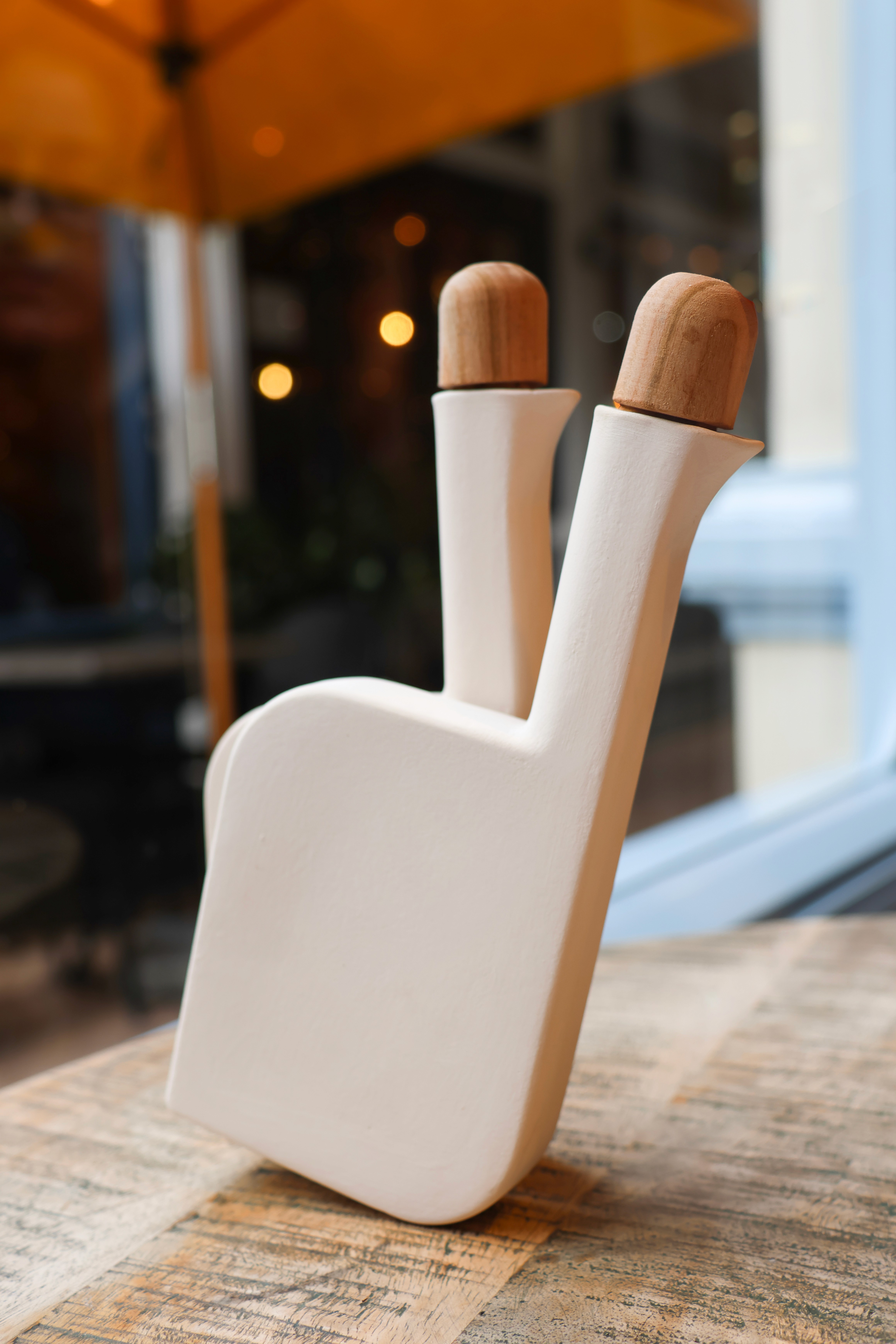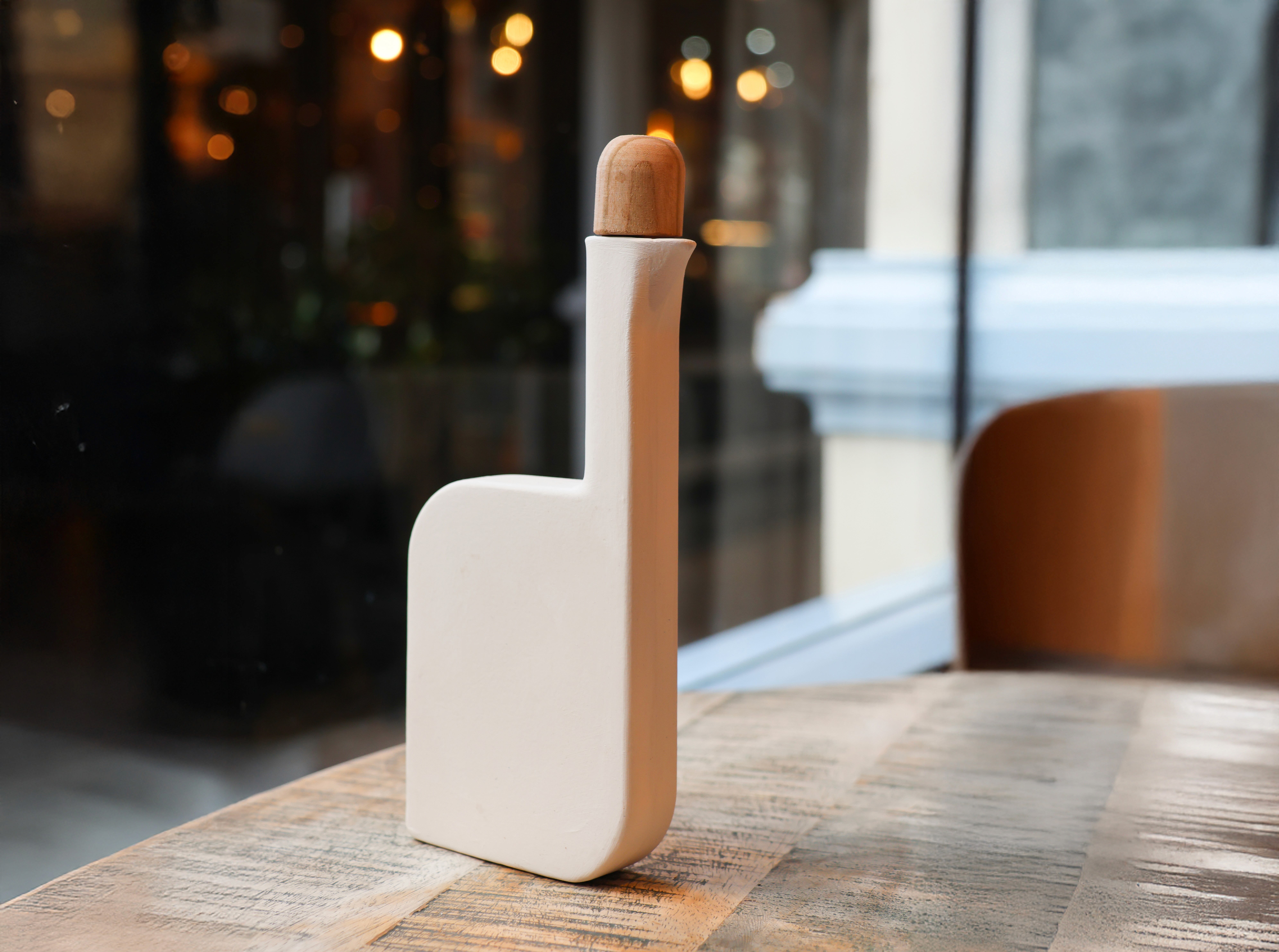 Inspired specifically by the form of the heron bird, Ardea, gets it’s name from the latin name of the genus of the heron bird. The form allows for pouring without having to lift the product off the table, resembling something similar to the pecking motion of birds. The shape and form of the vessel allows for a slow and smooth pour of vinegar, so that dispersion is consistent and controlled.