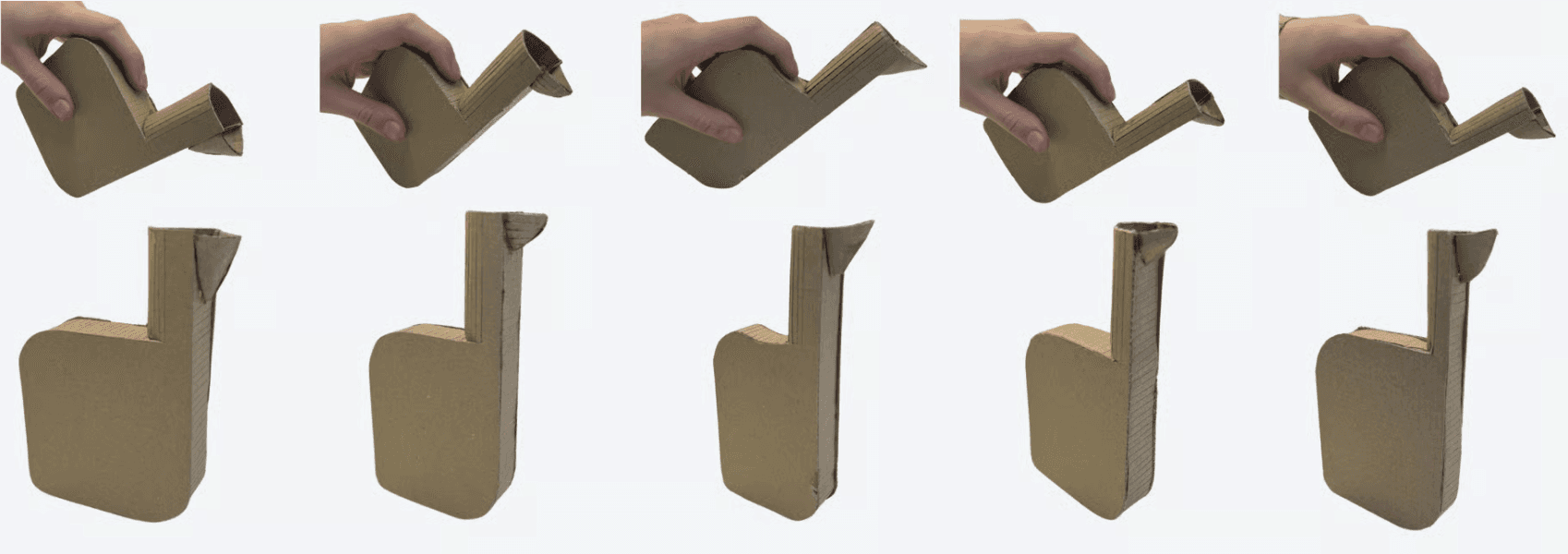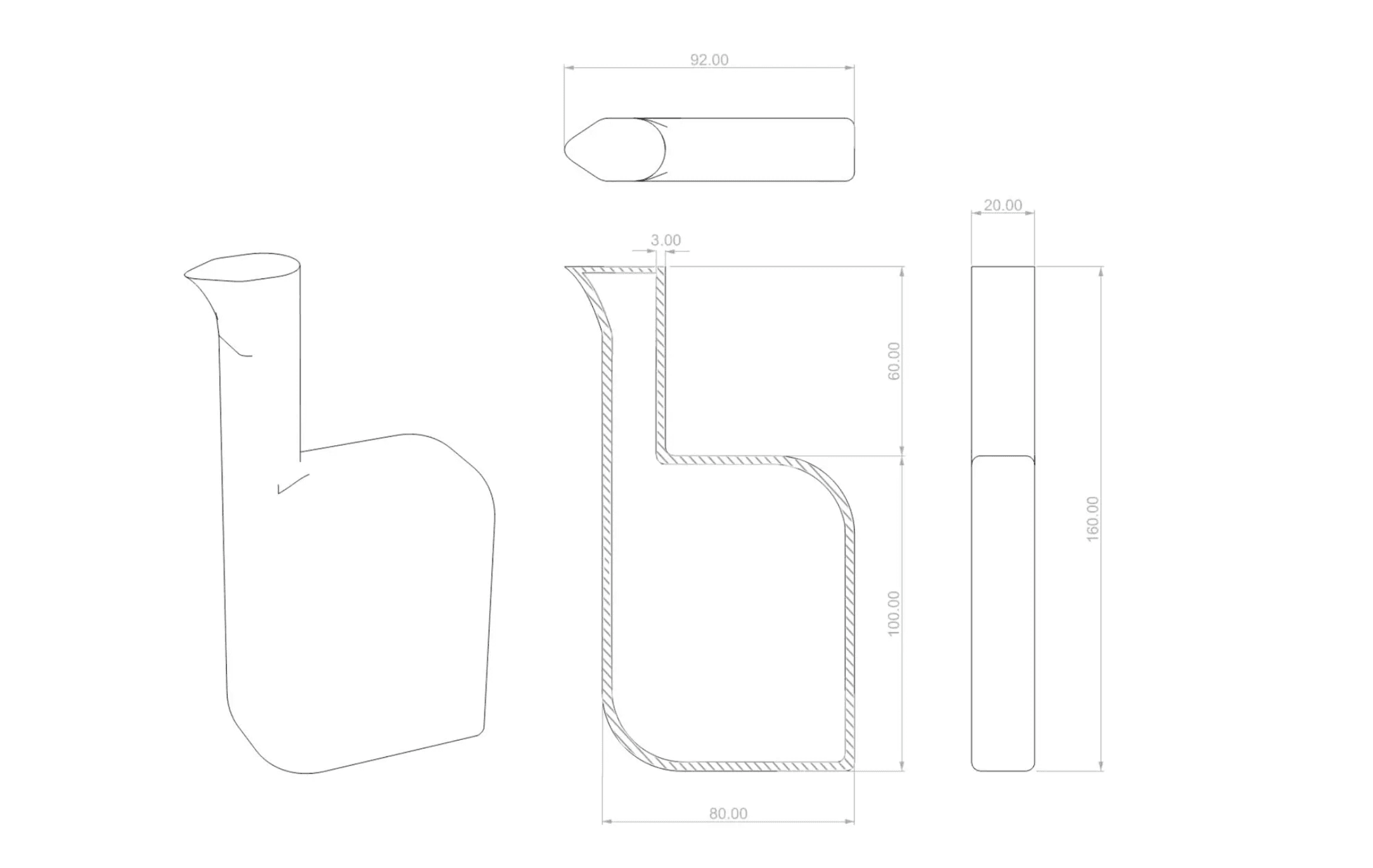I made multiple cardboard models to test the ergonomic of each variation of the form. I moved forward with the model that had the best ergonomics in allowing a user to hold and pour, either from above the table, or while keeping contact between the table and the product.